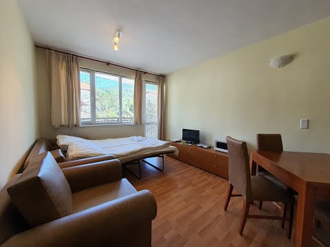 Fully furnished one-bedroom apartment in a gated complex Eagle Rock near the ski slopes of Borovets. In addition to the unique beauty of the surrounding countryside, the complex offers its guests peace, coziness and modern services - a restaurant with exquisite cuisine and perfect service, a magnificent garden with a playground, tables and benches for a pleasant holiday, a library with various family games, fitness, table tennis and snooker, as well as a sauna, steam room and bicycles for rent. Free Wi-Fi is available in the reception and garden areas as well as a computer at the reception.