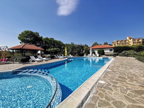 Fully furnished one-bedroom apartment, part of a quiet gated complex "Persani Village" in the sea resort of Sveti Vlas, near Marina Dinevi and only 300 meters from the golden beach. The property reveals a pleasant view of the sea and the pool of the complex.
