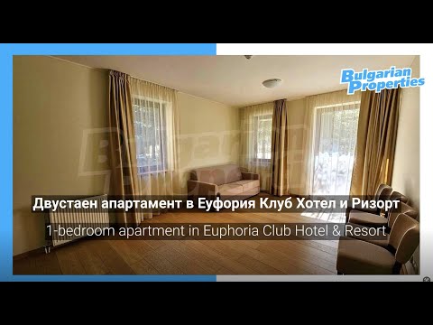 Comfortable one-bedroom apartment on the ground floor in the modern gated complex Euphoria Club Hotel & Resort, part of the popular ski resort Borovets, located only about 72 km from the capital Sofia. Annual maintenance fee - 12 euros/sq.m. without VAT.