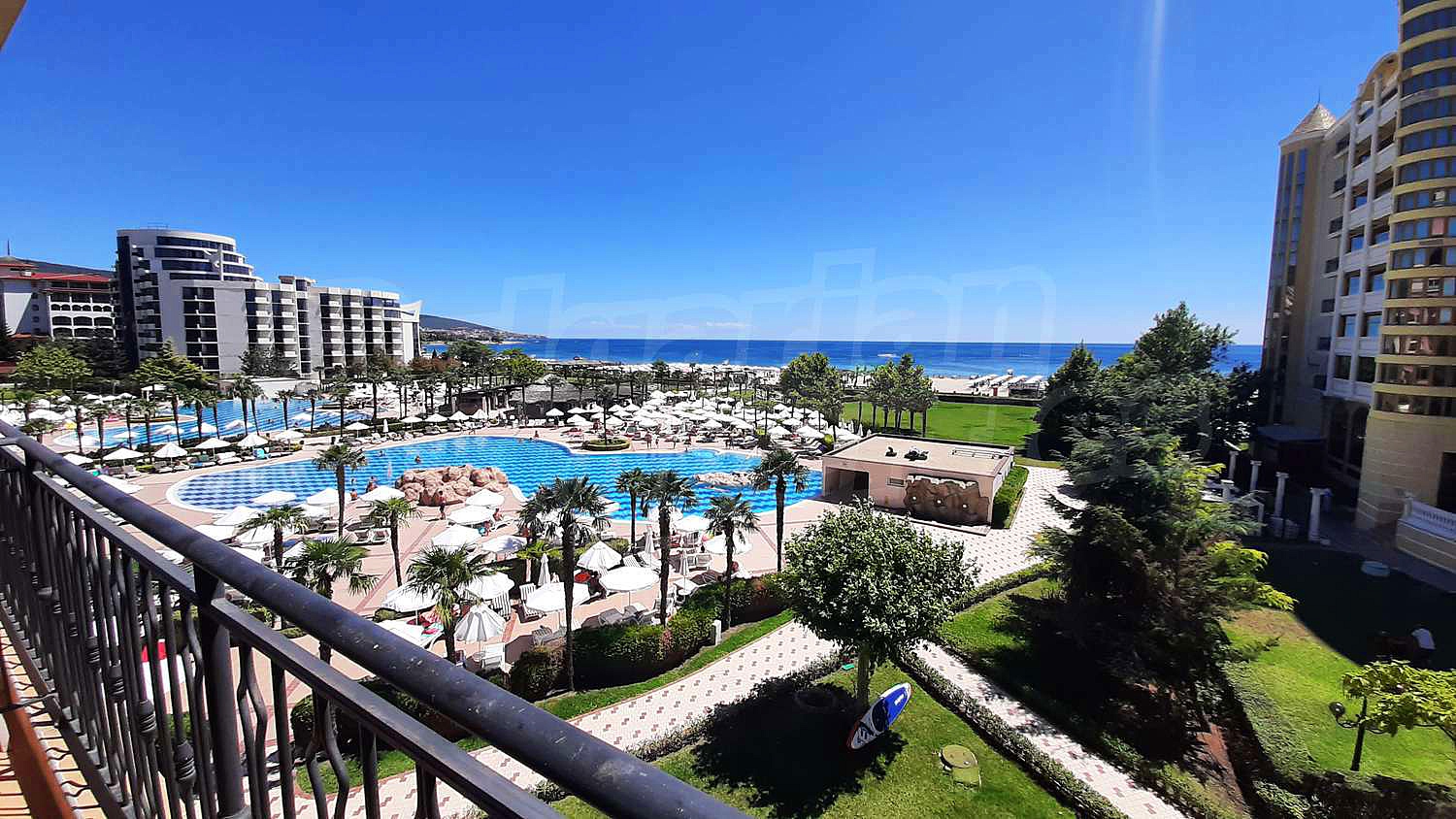 One-bedroom apartment in the luxury complex "Majestic Hotel & Residence" in Sunny Beach, strategically located on the first line, in the northern part of the most famous Bulgarian seaside resort - Sunny Beach. The complex is situated among the greenery of the mountain hills, 30 km north of Bourgas and 90 km south of Varna, the resort becomes the pearl of the Bulgarian Riviera.