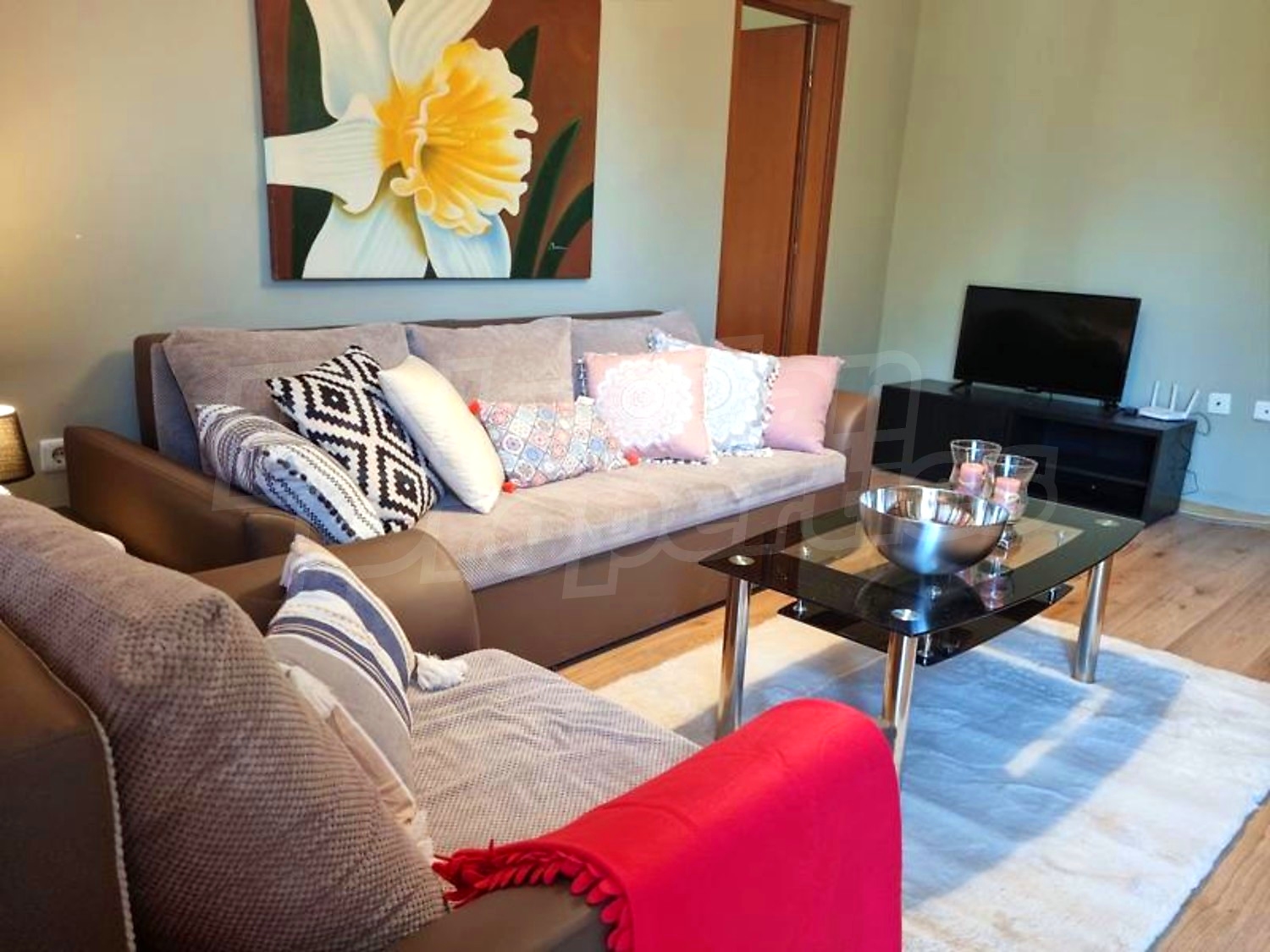 The apartment is fully furnished and equipped with everything necessary for a household, ready for immediate occupancy.