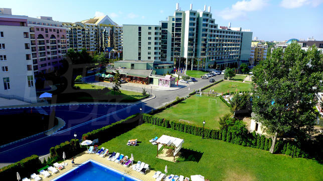 The complex is located on the second line from the beach. It offers its guests comfort and tranquility, as well as the following amenities - reception, well-maintained common areas, parking for the owners, video surveillance, 24 hour security, lobby bar, restaurant, pool bar, swimming pool, chip access, spa, fitness, all inclusive, etc. Many shops and entertainment are available nearby as well as the top resort center.