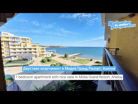 We offer for sale a furnished one-bedroom apartment in Midia Grand Resort complex, located meters from the longest beach in the area of Aheloy and a short walk from the park and shopping area, restaurants and cafes, 5 minutes drive from Nessebar and 10 minutes drive from Pomorie. The complex is surrounded by beautifully landscaped gardens and offers first class facilities which include a large swimming pool with children's section and pool bar for the adults, two restaurants, a cafe, a magnificent panoramic bar as well as a business centre. The maintenance fee is ˆ918/year.