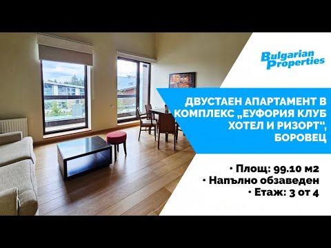 New offer for the sale of an one-bedroom apartment in gated complex Euphoria Club Hotel and Resort built in peace, quietness and greenery, with easy access to the modern ski facilities of Borovets. The area is suitable not only for winter sports, but also for summer tourism, attracting Bulgarian and foreign tourists throughout the year. The property is offered for sale without commission from the buyer.