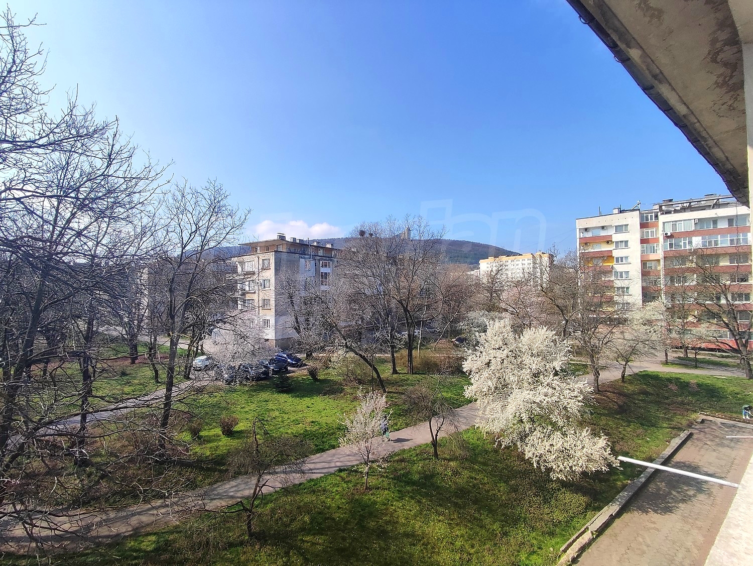 The apartment benefits from a south-facing exposure, ensuring plenty of natural light and a pleasant view towards the 1300 Years of Bulgaria monument.