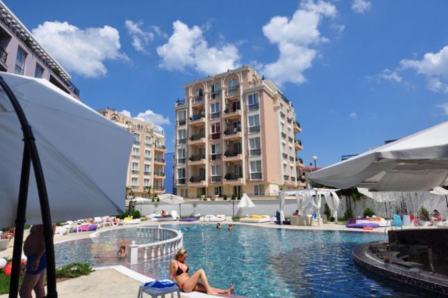 Ready to move in, two-bedroom apartment located in the heart of Sunny Beach - the most popular Bulgarian seaside resort, in Sea Isle (Rainbow 4) complex, set 800 meters to the sea and 200 meters to a bus stop. The annual maintenance fee of the complex is EUR 12 per m2.