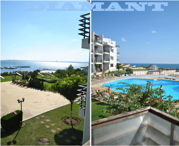 The apartment is located in the complex "Diamant", located on the seashore, finished with original architecture that satisfies even the most refined taste, with many modern amenities and close to the beach (20 meters), to the casino (50 meters), to the church , amphitheater, spa and disco (100 meters) and 300 meters from a bus stop. Burgas Airport is 35 km from the property, and Varna Airport - 100 km. The panoramic views are impressive, offering a beautiful view of the entire bay.