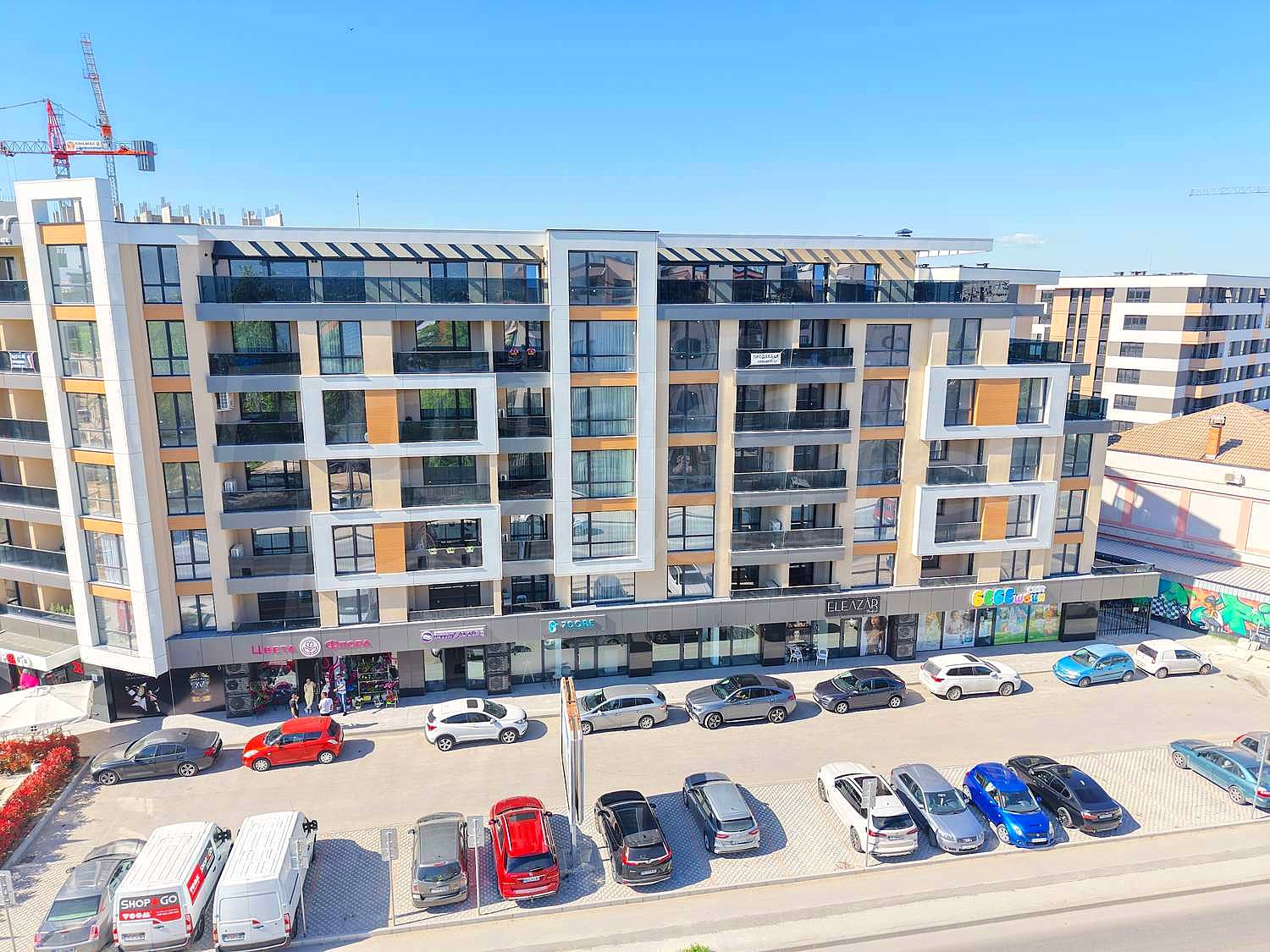 The complex consists of two twin buildings - A and B, each on seven levels - one underground with parking spaces and garages, ground floor with shops, garages and residential floors with a total of 92 apartments. On the ground floor of building A there is a large property that can be turned into a showroom or food store, as the area is well built and there are no such shops around. The commercial areas are fully compliant with all requirements for construction, loading ramp, toilets, etc.