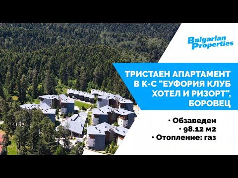 We are pleased to offer for sale a partly furnished two-bedroom apartment in the pine forests of the Rila Mountain in the beautiful ski resort Borovets, located about 72 km from the capital (one hour drive). The apartment is a part of the modern gated complex "Euphoria Club Hotel and Resort", built amidst peace, quietness and greenery, with easy access to the modern ski facilities, in an area suitable not only for winter sports, but also for summer tourism, attracting Bulgarian and foreign tourists throughout the year. Annual maintenance fee - 15.72 euro/sq.m. excluding VAT.