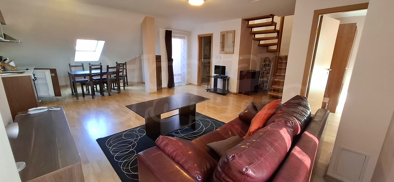 The terraces are facing east and west. The eastern one overlooks the river Glazne, the town of Bansko and the Pirin Mountain, and the western one - the inner garden of the building. The full furniture and equipment can be seen in the photos.