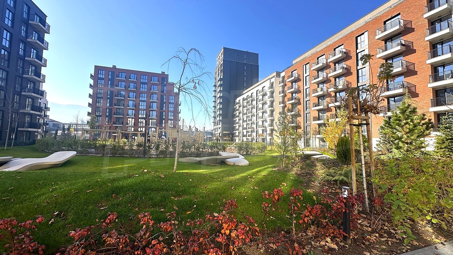 The residential complex offers landscaped green areas, pedestrian alleys, and cosy relaxation zones, as well as children’s playgrounds in a car-free zone, ensuring a safe and pleasant environment for families.