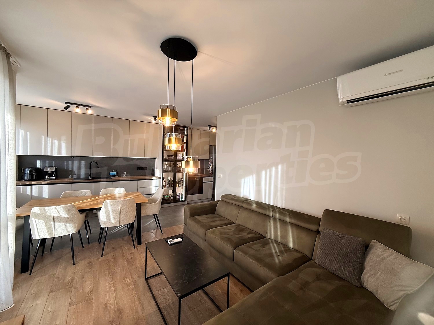 The apartment is fully furnished with high-quality furniture and new appliances by Bosch. High-class inverter air conditioners ensure year-round comfort. One of the bedrooms is left unfurnished, allowing for personal customisation.