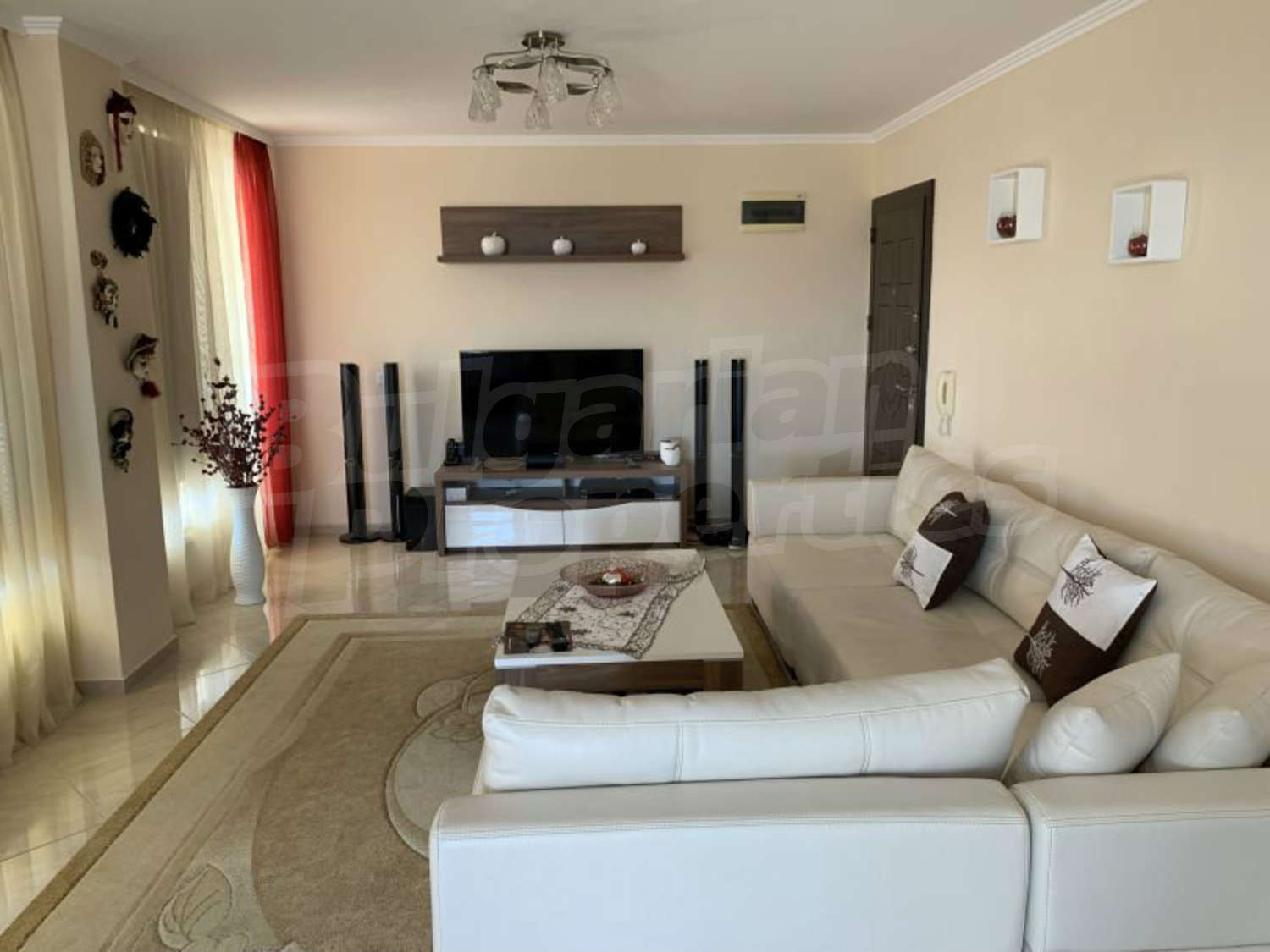 Stylish, fully furnished and full of light 3-bedroom penthouse with large terrace and sea views, located in the preferred Sarafovo quarter, 300 m from the beach and the sea and 100 m from the center of the quarter.