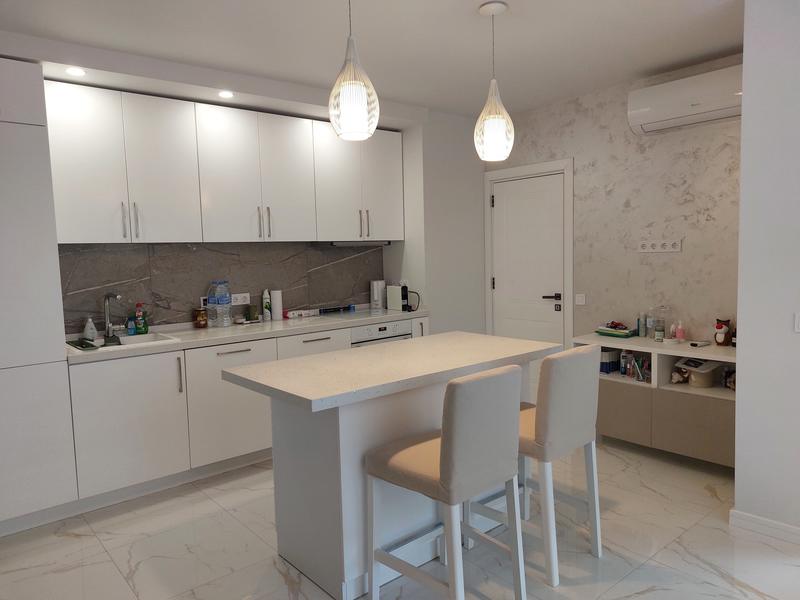 We offer you this 2-bedroom apartment with a total area of 120 m2. The property has central heating. granite tiled flooring, interior doors, laminate flooring, painted walls, suspended ceiling and