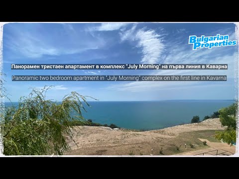 An excellent offer for a comfortably furnished and equipped two-bedroom apartment with wonderful sea view from Cape Kaliakra to Cape Emine, on the first line in the complex July Morning, located in the middle part of the northern Bulgarian Black Sea coast, in a quiet, secluded location, away from the noise of the resorts, but only 3-4 minutes drive to the coastal area of Kavarna. It is located 15 km from Cape Kaliakra, 20 km from the beautiful town of Balchik, with a fast and convenient connection to Varna airport.
