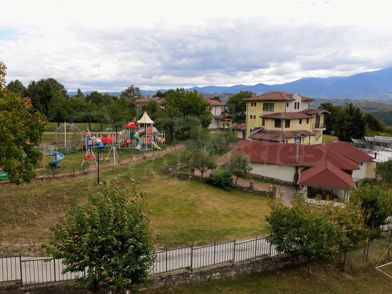 Sold fully furnished, equipped, utilities supplied. Located 700 m above sea level in pure nature, south facing, beautifully landscaped parklands with spectacular views of the ridge of the Balkan Mountains and all year round access by asphalt road.