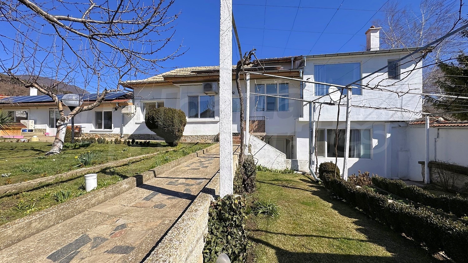 The garden is on two levels well maintained, with fruit trees, grapes, flowers, artificial pond, outdoor bathroom with toilet, parking space and garage-storage 30 sq. m., as well as a solid high fence along all borders. There is a separate area for relaxation and outdoor cooking overlooking the southern slopes of the mountain.