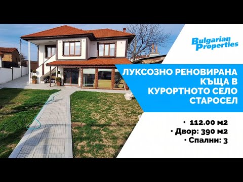 Fully renovated modern two-storey house (112 sq.m.) with a garden (390 sq.m.), jacuzzi for 6 people and parking lot for two cars, set near the center of the well-developed village Starosel, 49 km from Plovdiv.