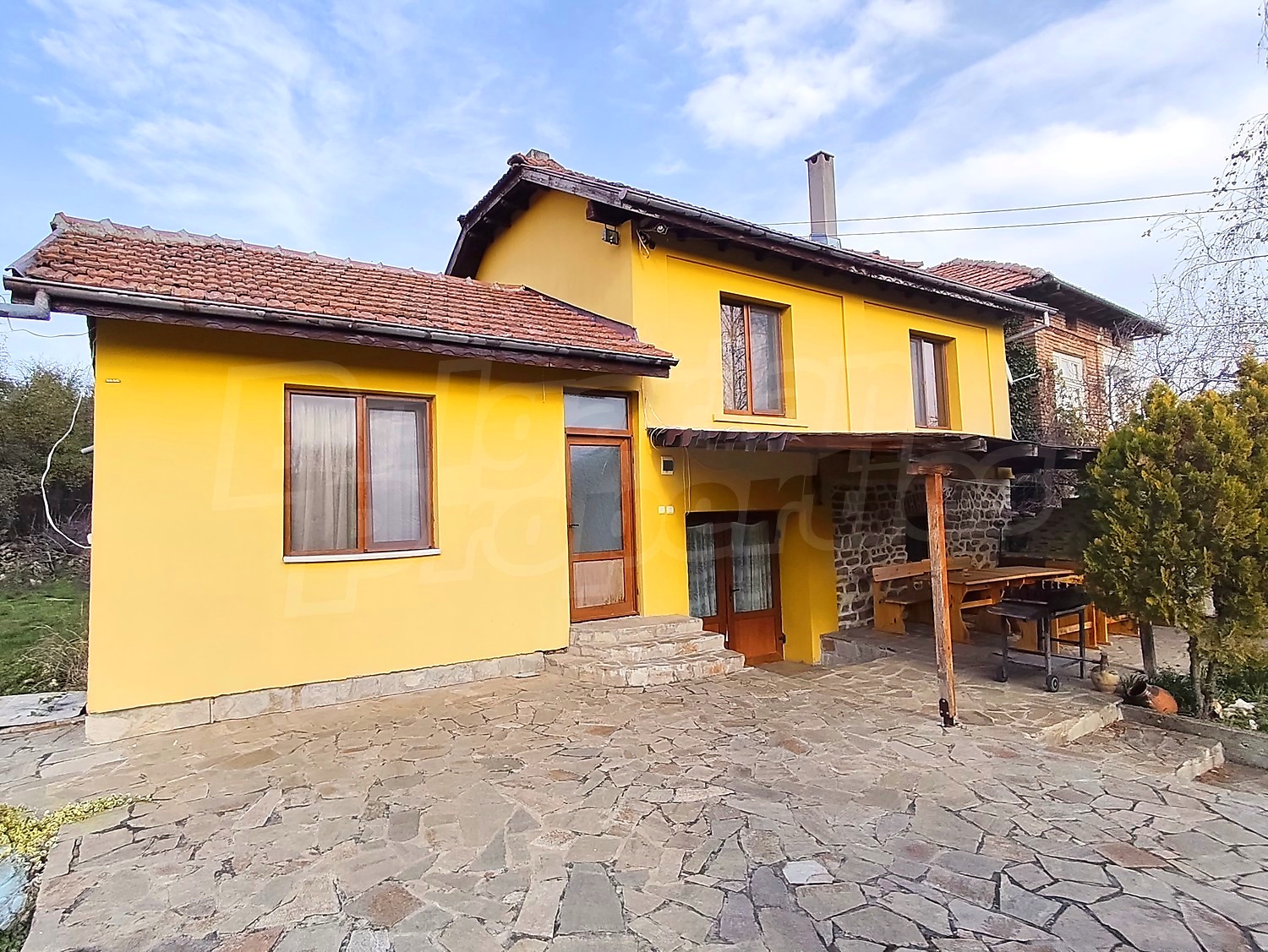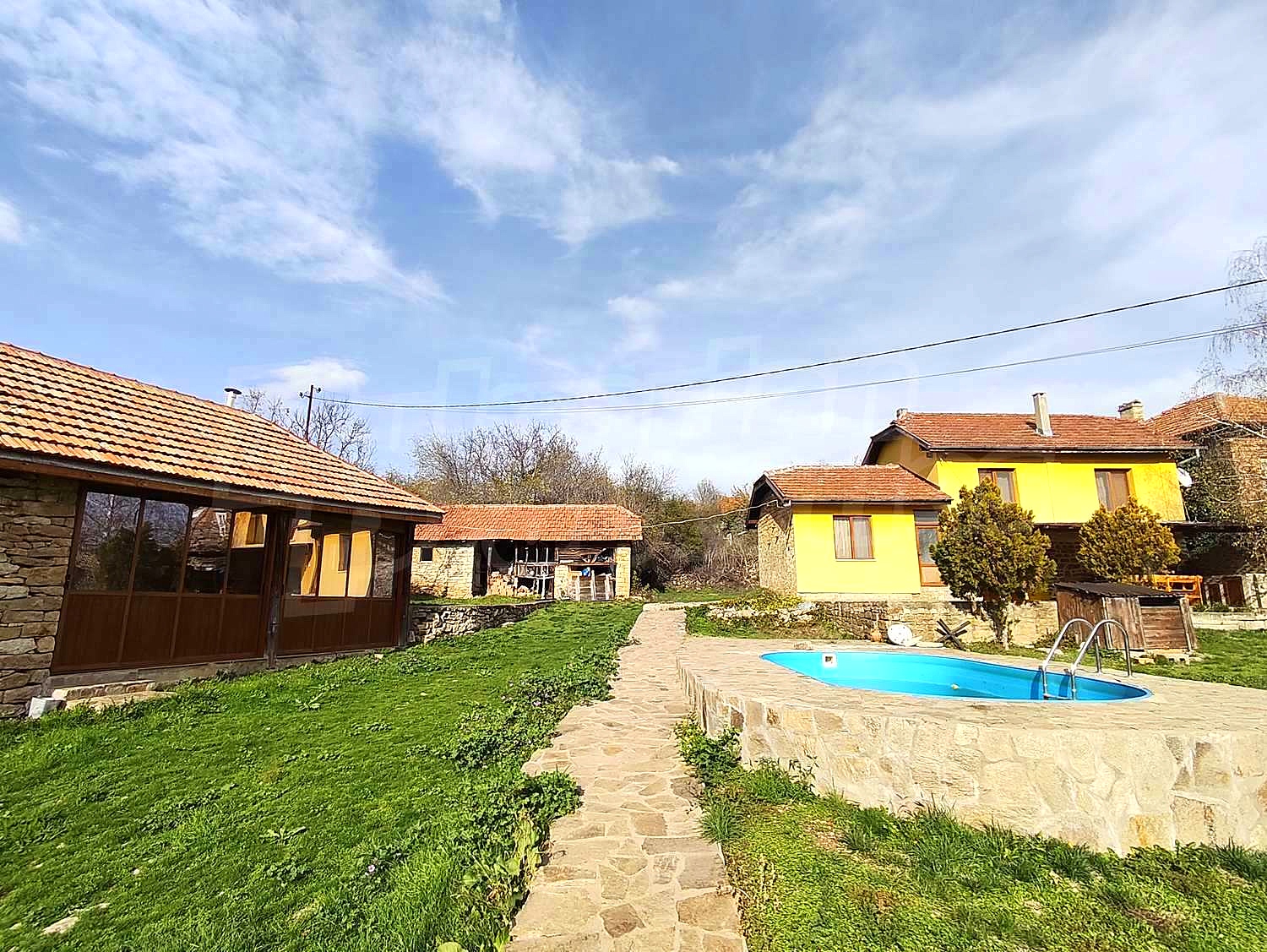 Our new offer comes from the picturesque village Koevtsi, nestled among the fields and hills of the Northern Pre-Balkan - a unique property where the tranquility of rural life meets comfort and coziness. The property includes a house (112 sq.m.) and a garden of 1182 sq.m. with a swimming pool, surrounded by a solid stone wall, which gives a sense of privacy and authentic charm. The courtyard offers panoramic views of the surrounding fields and green hillsides, and a small stream flows 50 metres away.