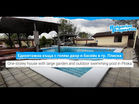 We are pleased to present to your attention an excellent one-storey house with a large garden (3000 sq.m.), outdoor swimming pool, garage for two cars (60 sq.m.), parking space, barbecue and video surveillance nearby to the center of Pliska.