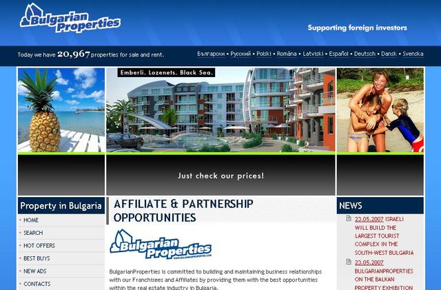 BulgarianProperties’s affiliation and partnership system is a very well-established one with years of experience, regular updates and a lot of working cooperations. As we know the details, we strongly recommend that when you wish to establish a partnership, you should choose only established and well-known companies. E-mail us for more details.