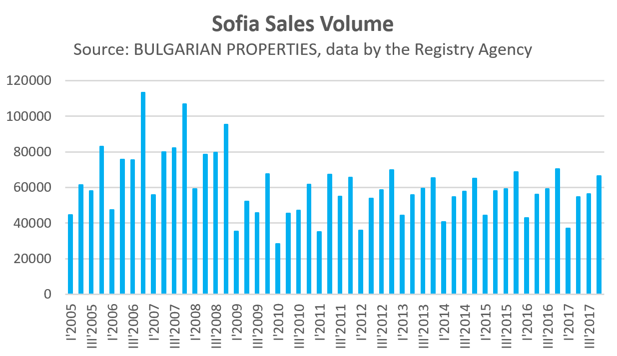 According to the data of the Registry Agency for the 4th quarter, 9,411 property sales were completed in Sofia, compared to 8,428 in the same period in 2016, which results in an increase of 11.7% on an annual basis.