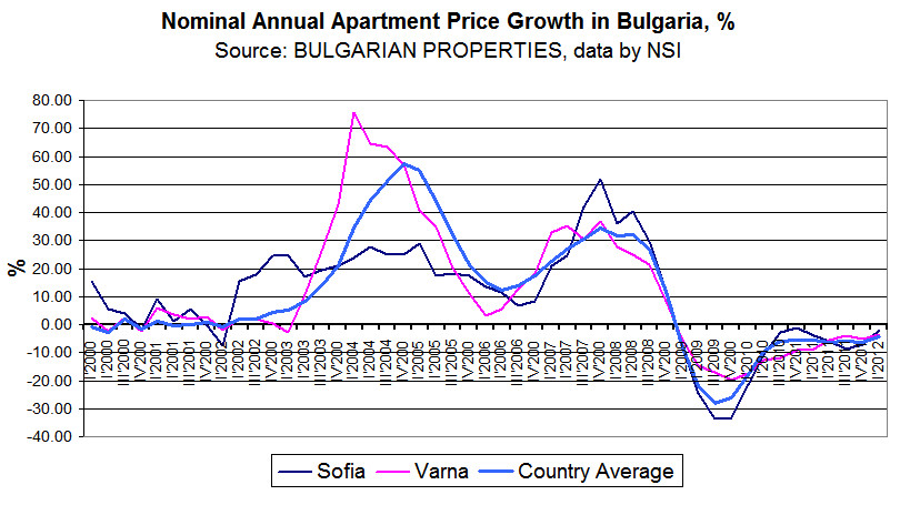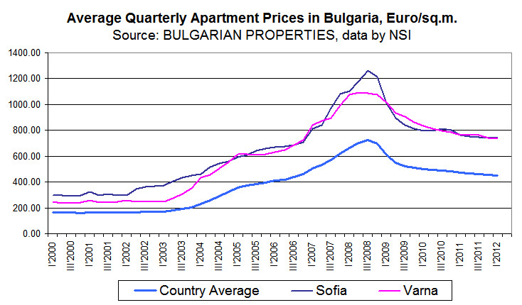 According to the data of the Bulgarian National Statistical Institute (NSI) about prices of apartments in the regional cities in 1Q 2012 they have remained similar to those in the last quarter of 2011. This confirms the data BULGARIAN PROPERTIES published recently in their analysis of the Bulgarian real estate market in 1Q 2012.