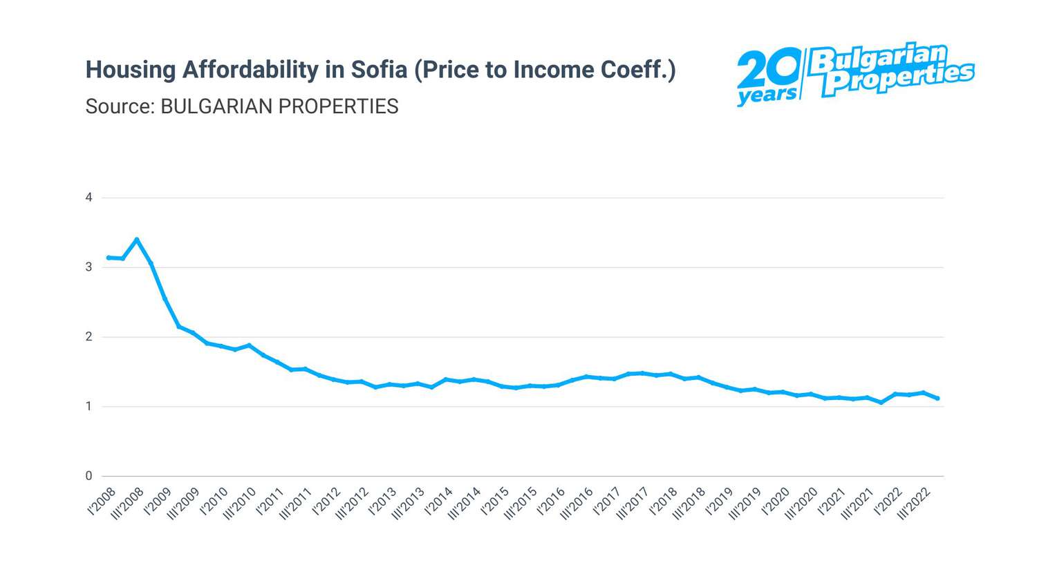The other macroeconomic factors that affect the housing market continue to have a positive impact - unemployment is below 4%, and incomes continue to rise - on average by around 17% at the end of 2022 according to the National Statistical Institute. Thus, although incomes are growing at a slightly slower pace than prices, they maintain a stable price-to-income ratio, which gives us the affordability of housing.