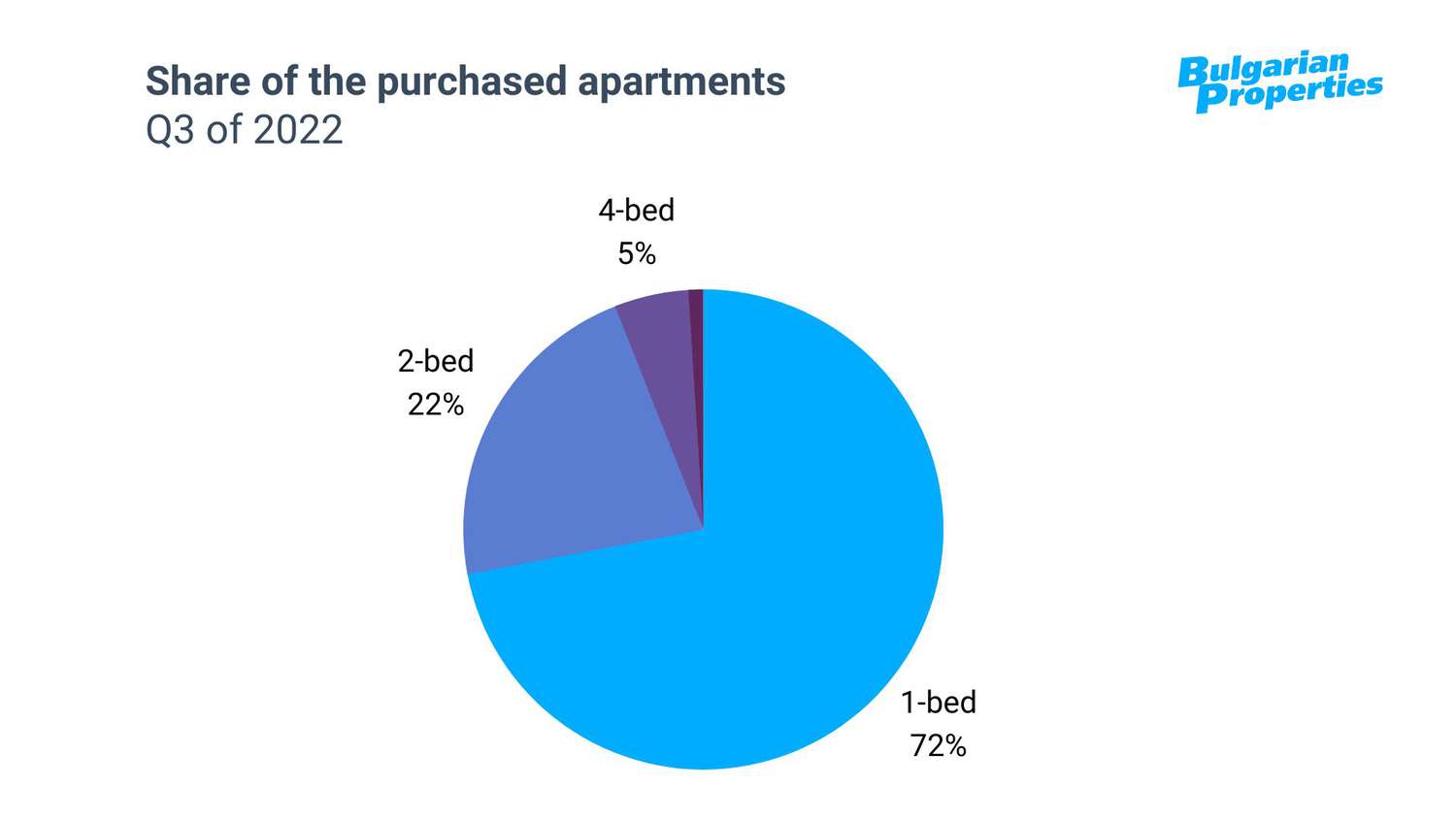 The share of the purchased 1-bedroom apartments continued to grow in the 3rd quarter and reached a share of 72% compared to 50% in previous periods. 2-bedroom homes made up just 22%, and 3-bedroom homes returned to levels around 5%.