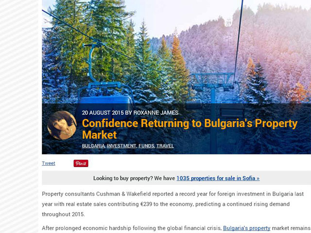 Property consultants Cushman & Wakefield reported a record year for foreign investment in Bulgaria last year with real estate sales contributing €239 to the economy, predicting a continued rising demand throughout 2015.