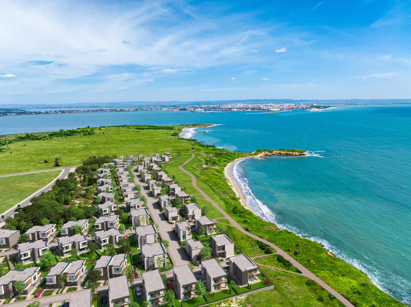 A large-scale residential project between three beaches – detached houses with private gardens, modern apartments, full infrastructure, and year-round comfort