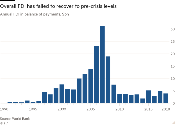 Both greenfield FDI and overall FDI recorded in the balance of payments — which includes mergers and acquisitions, intra-company loans and other items — have failed to recover to their levels before the global financial crisis of 2008-09, when they were rising quickly following Bulgaria’s accession to the EU in 2007.