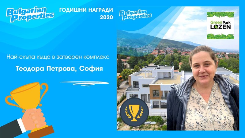 • The most expensive sale of a house in a gated complex was made by Teodora Petrova - a house in Green Park Lozen