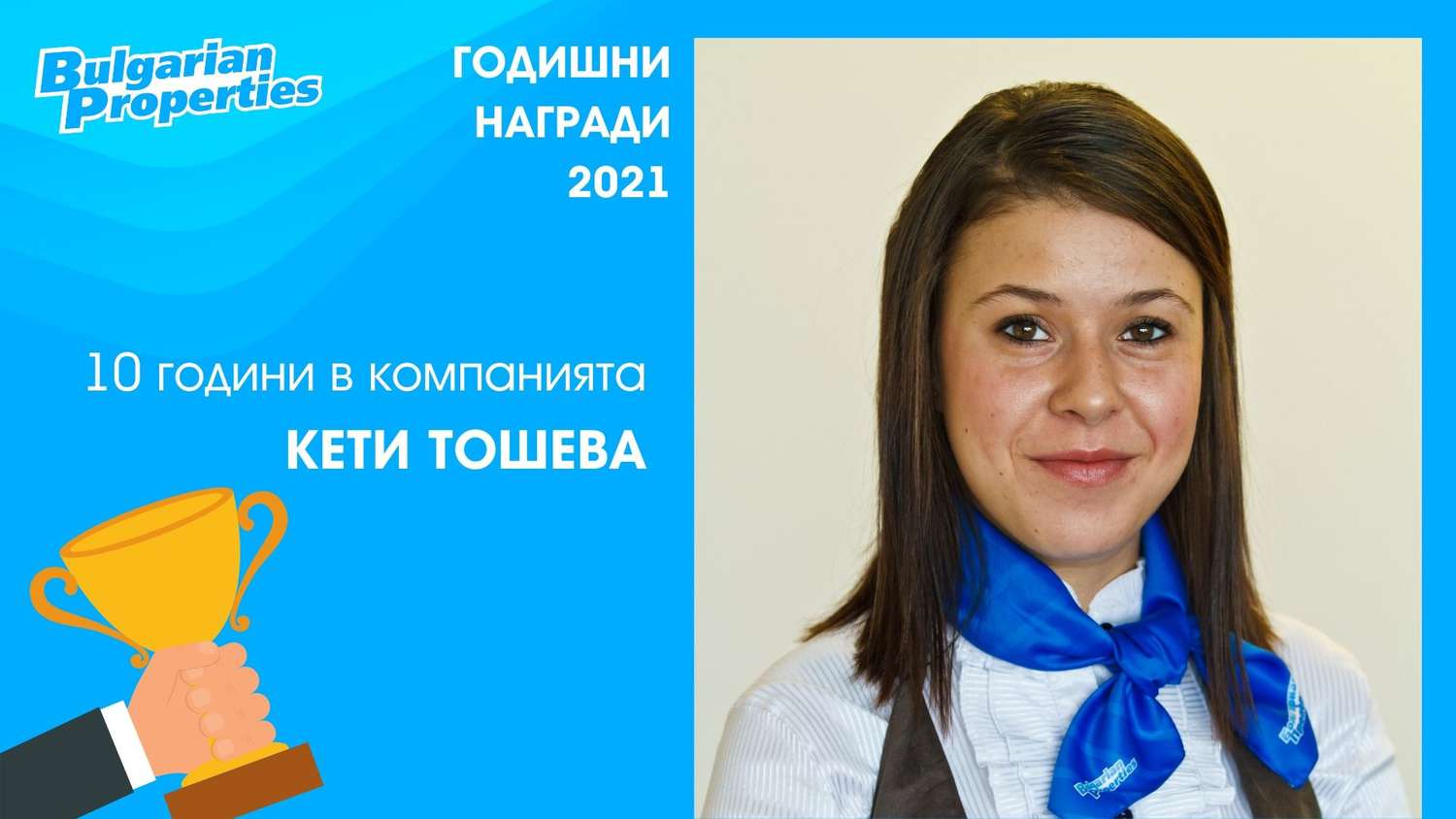 Before all the other awards, the special prize for 10 years experience in BULGARIAN PROPERTIES goes to one of our youngest, but at the same time longest-serving colleagues - Keti Tosheva.