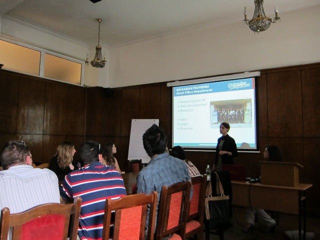 We gave the students information of key facts about our company, its formation and development and current perspectives. An accent was put on our online marketing activities and the features of our website as a central part of our property marketing. Ms Stoykova had the chance to present our innovative services as Skype viewings, properties with video clips, positioning of the properties on the map of Bulgaria, our affiliate programme and many others.