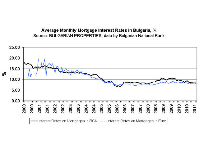 The increase in the number of granted mortgage loans is accompanied by a drop in the average interest rates of the loans in January and February 2011. They are between 0.5 and 1 percent lower compared to the period January and February 2010. Since the second half of 2010 the average interest rates for mortgage loans in BGN and EUR are between 7.8% and 8.5%, as the interest rates for loans in EUR are lower than those in BGN. According to BNB’s latest data for February the average interest rate for mortgage loans in BGN is 8.32% and in EUR the percent is 8.13, while these figures were 9.31% and 8.49% respectively a year earlier (pic.1)