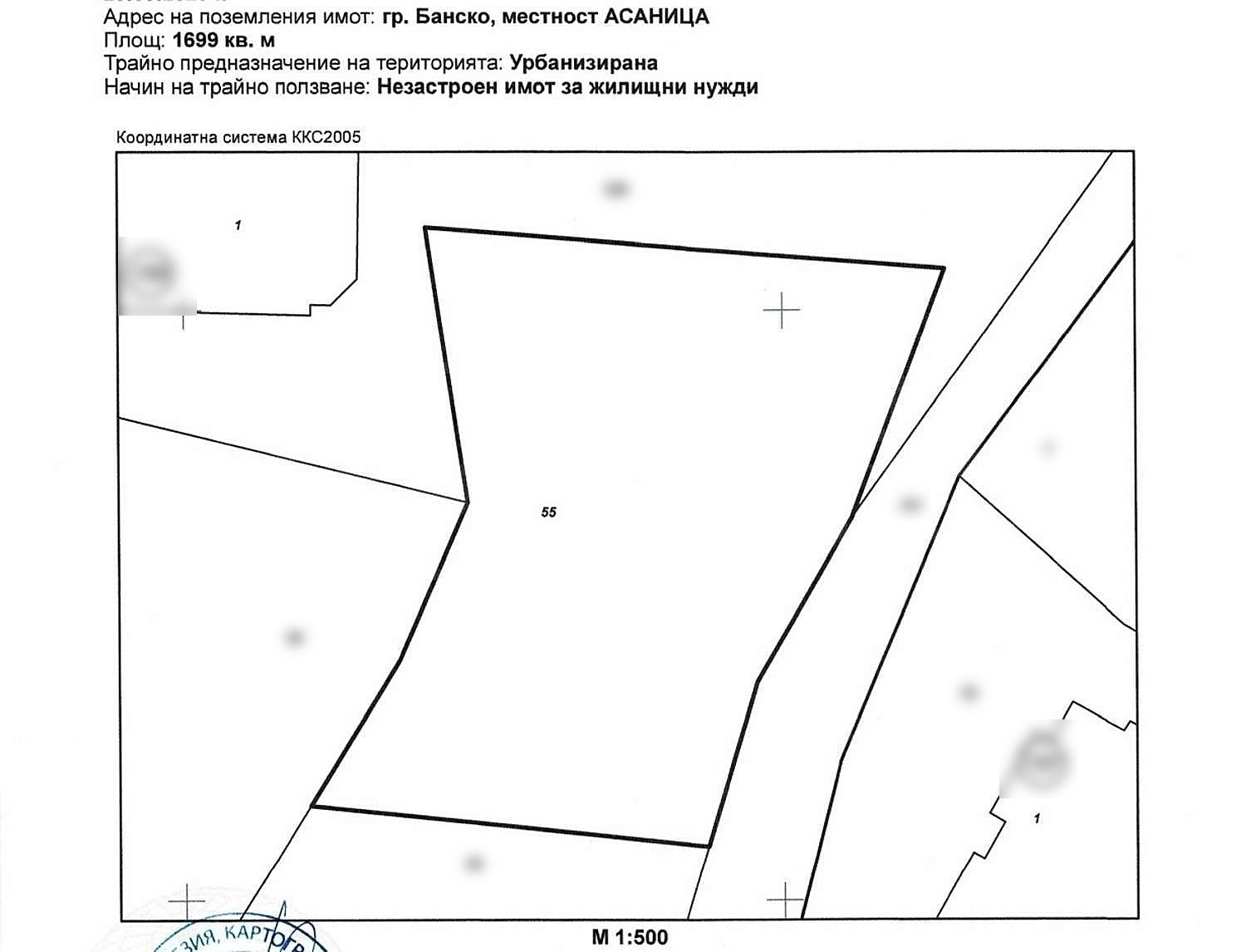 We offer for sale a building plot, urbanized for residential needs, in the Asanitsa area of Bansko, near the modern complex Regnum. The property offers wonderful view of the Pirin mountain, the slopes and the town. It is suitable for building both a single-family home and a building or a small boutique hotel near the modern ski facilities of Bansko.