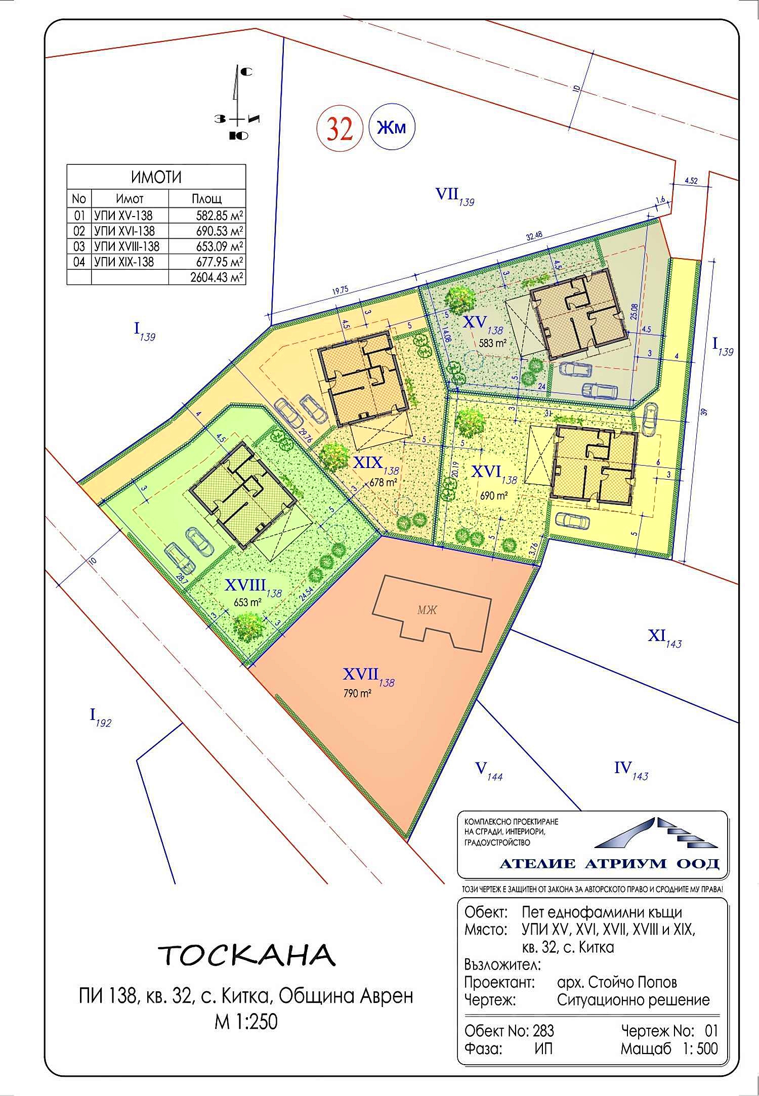 The plots are adjacent south facing and are located in the center of the village. The plots have a valid Master Plan and Development Plan, with issued and agreed sketch-visa for the design of residential buildings and a statement for connection to electricity and water supply networks.