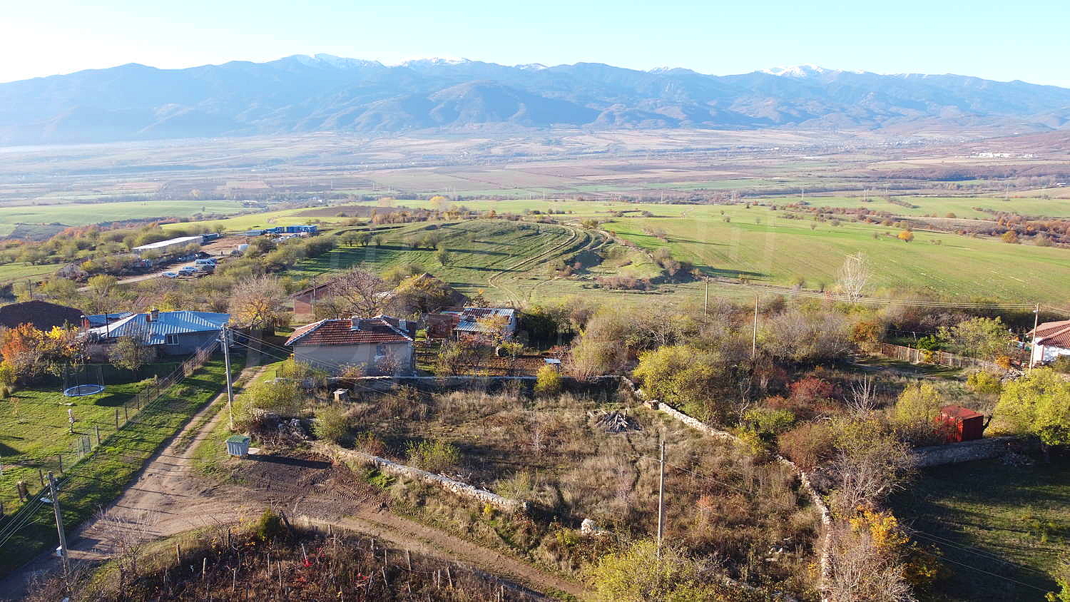 The land features two water wells with abundant mountain water, a stone wall, electricity and central water connection on the border. Access is easy – asphalt road within 200 m, and the remaining stretch is a well-maintained gravel road, accessible year-round. The surrounding area has new, well-kept houses and offers a quiet, clean and secure environment.