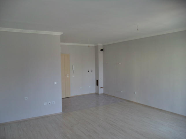 The newly-built apartment (2012) with an area of 46 sq.m. is finished with laminate and tiled flooring, painted walls and PVC joinery. It is located on the second floor and overlooks the surrounding buildings. The flat has cable TV, internet and security system, and the building is equipped with lift.