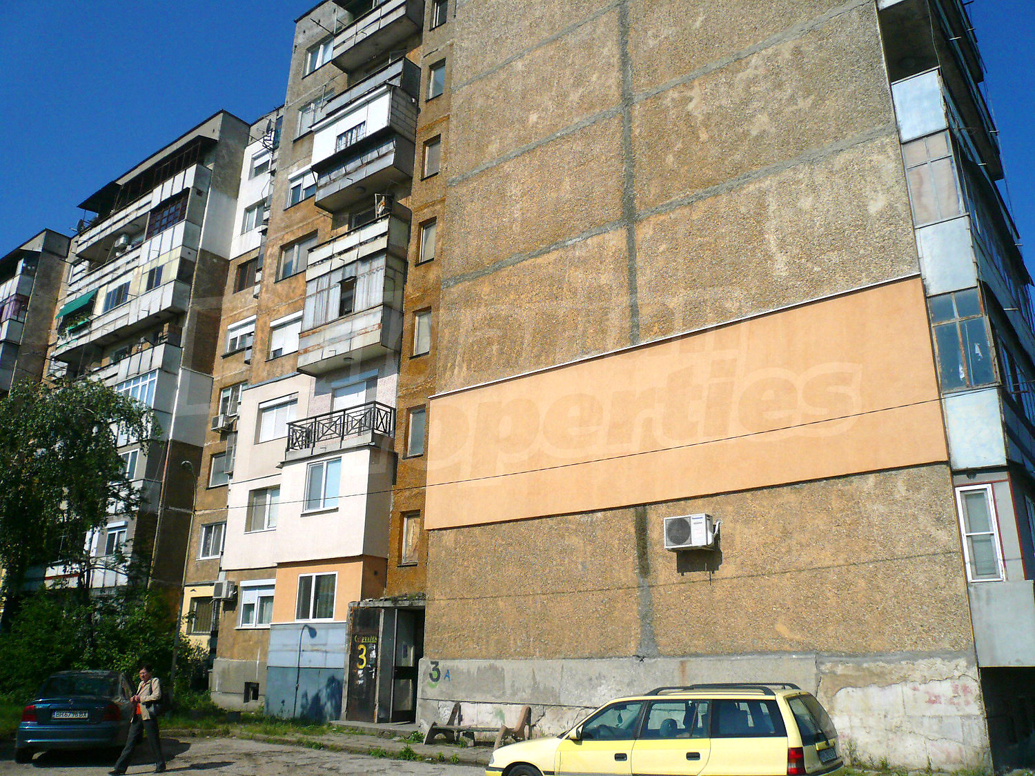 The property is set on the fourth floor in a panel block (1984), with an elevator. The dwelling is facing west, with an area of 48 sq.m. + a basement. The apartment is divided between a kitchen (linoleum floors), a living room (carpets), 2 terraces, a bathroom with WC (terracotta and faience tiles). The walls are with wallpapers, the windows with wooden frames. The property is sold without furniture, in need of major repairs.