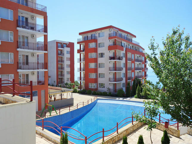 We present for sale a ready-to-move studio with a spacious terrace and beautiful sea view in the luxury gated complex "Panorama Fort Beach", part of the apart-hotel "Grand Resort" on the first line from the sea (50 m). The complex is located in a picturesque, quiet bay on the beach Robinson between the sea resorts of Sveti Vlas and Elenite, 6 km southern of Sunny Beach, 8 km from the ancient town of Nesebar and 30 km from the international airport in Burgas.