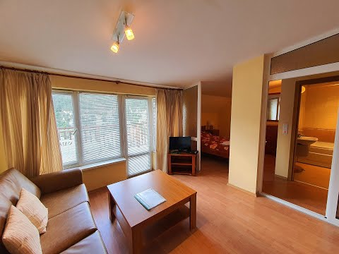 Fully furnished studio with beautiful mountain views in a gated complex Eagle Rock near the ski slopes of Borovets. In addition to the unique beauty of the surrounding countryside, the complex offers its guests peace, coziness and modern services - a restaurant with exquisite cuisine and perfect service, a magnificent garden with a playground, tables and benches for a pleasant holiday, a library with various family games, fitness, table tennis and snooker, as well as a sauna, steam room and bicycles for rent. Free Wi-Fi is available in the reception and garden areas as well as a computer at the reception.