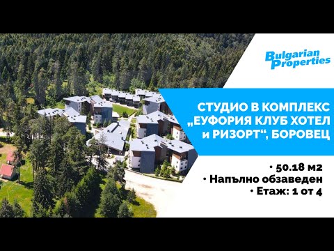 We present to your attention a ready-to-move studio in the modern gated complex "Euphoria Club Hotel and Resort", built amidst peace, quietness and greenery, with easy access to the modern ski facilities, in an area suitable not only for winter sports, but also for summer tourism, attracting Bulgarian and foreign tourists throughout the year. The complex is located among the pine forests of Rila Mountain in the beautiful ski resort Borovets, only about 72 km from the capital (one hour drive).