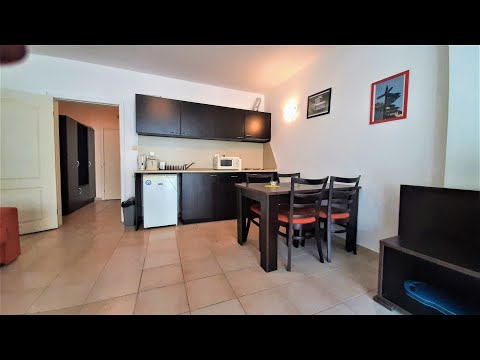 Holiday studio apartment in Forum complex, located in the southern part of Sunny Beach, which is characterized by peace and quietness, set away from the noise of the downtown area, but only 10 minutes walk from Cacao Beach and Nessebar. The apart-hotel is a great choice for those who want to escape from the noise and stress and enjoy quiet and cozy holidays, in comfort and high class services. Annual maintenance fee for the complex - 300 euros.