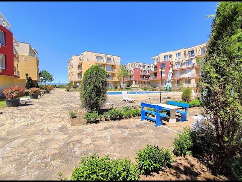 Compact studio with furniture and equipment and nice, spacious views of the mountain and the fields in gated complex Sunny Day 5, located at the outskirts of the popular sea resort Sunny Beach (2 km), near the village of Tynkovo, 200 m from a bus stop and 4 km from the beach, 10 minutes walk from a food store and 10 minutes by car to water park and modern shopping center, 6 km from the ancient town-museum Nessebar and 35 km from Sarafovo airport. The annual maintenance fee for the complex is 510 euros.