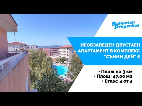 We offer for sale a one-bedroom apartment with an area of 47 sq.m., located on the fourth, top floor of the popular Sunny Day 6 complex, only 3 km from the golden beaches of Sunny Beach and close to the picturesque village of Tankovo. There is a bus stop for the resort 50 metres from the complex. The complex offers its guests an outdoor swimming pool with a children's section, a tennis court, a mini golf course, a football field, a restaurant and bar, security, and a children's playground.