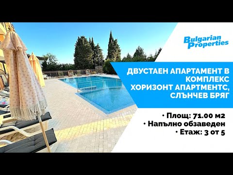 Spacious and fully furnished apartment with exclusive location - just 200 meters from the sea, in the prestigious residential complex "Horizon", located between Sunny Beach and Sveti Vlas. This property is a great choice both for personal use and as an investment with high potential for renting during the summer season.