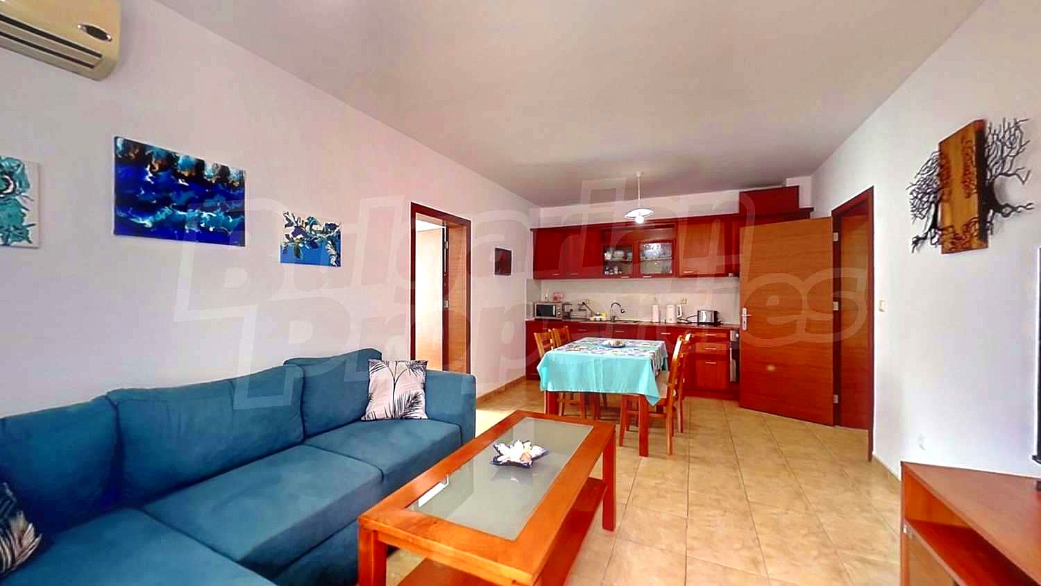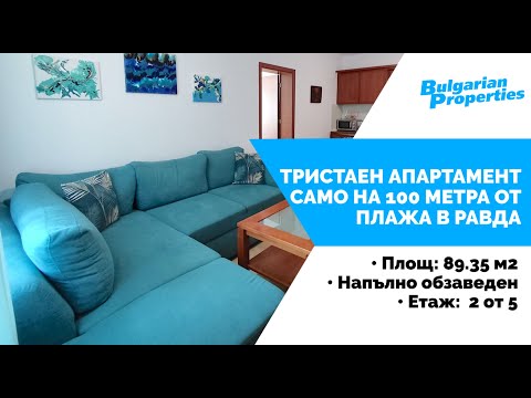 Spacious and fully furnished two bedroom apartment, located in a quiet and well-kept complex with swimming pool, just 100 meters from the sea and a few steps from the main street of Ravda. The location is excellent - there is a bus stop nearby (50 m), which provides convenient transport to Nessebar, Burgas and Sunny Beach.