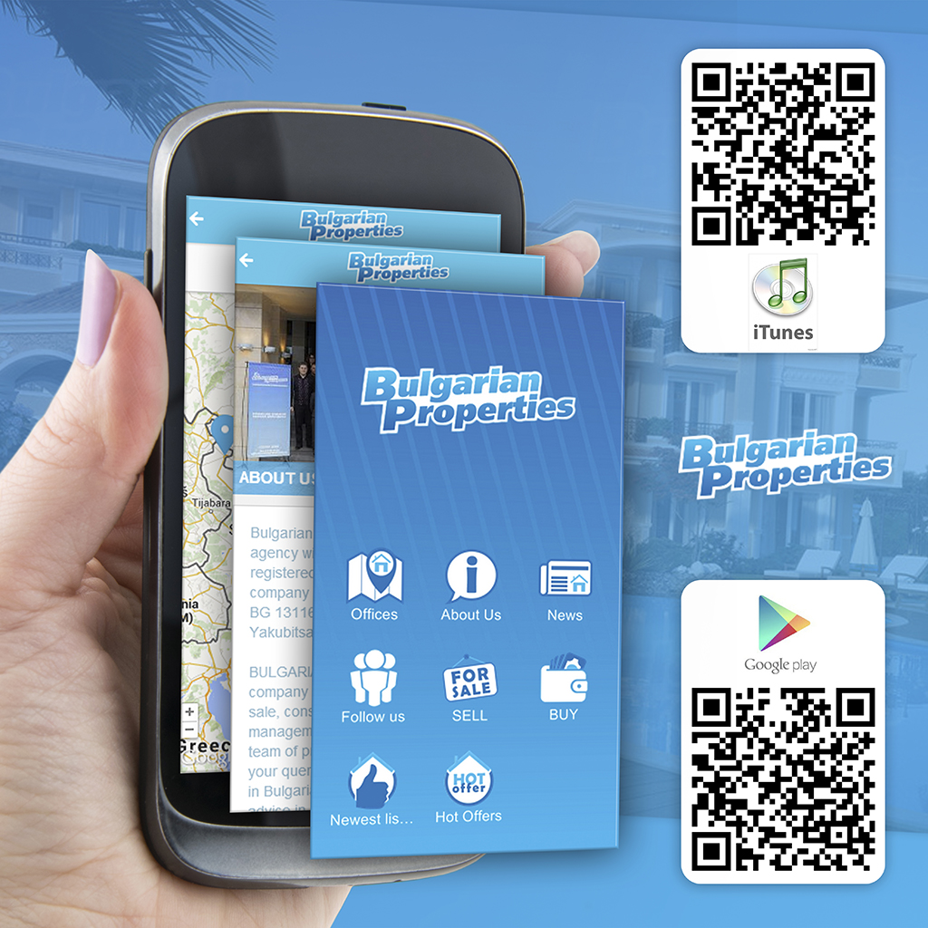 BULGARIAN PROPERTIES has launched a mobile app for Android and iOS, which is available for a free download from Google Play and iTunes.More and more online users are browsing through mobile devices. In order to make your property search with tablets and smartphones easier, we have launched this mobile app for the most popular mobile platforms.